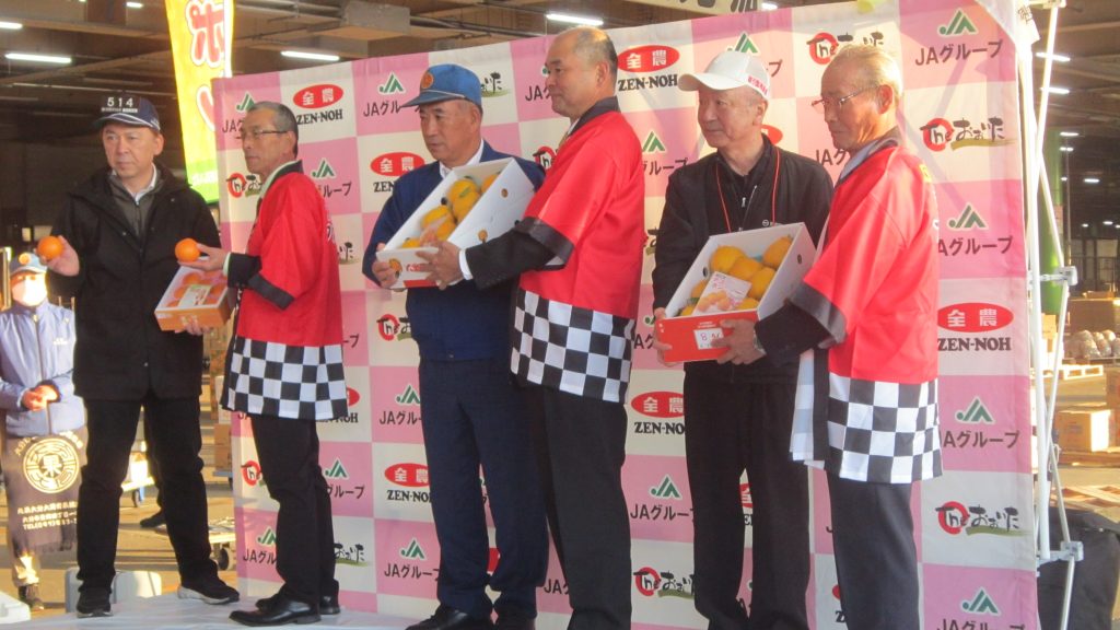 ハウスデコポンとハウス美娘の初競り式が行われ