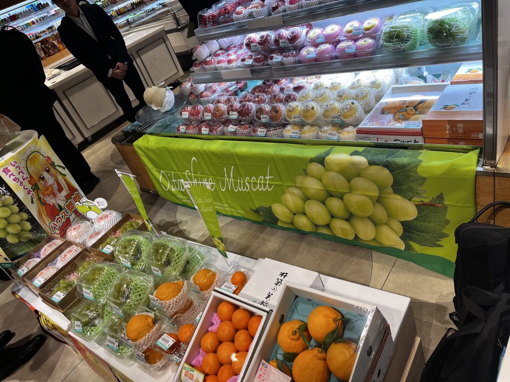 果物だけでなく、干し椎茸や大分の地酒、さらには海産物も紹介し、大分県の「食」の幅広さを総合的にアピール。