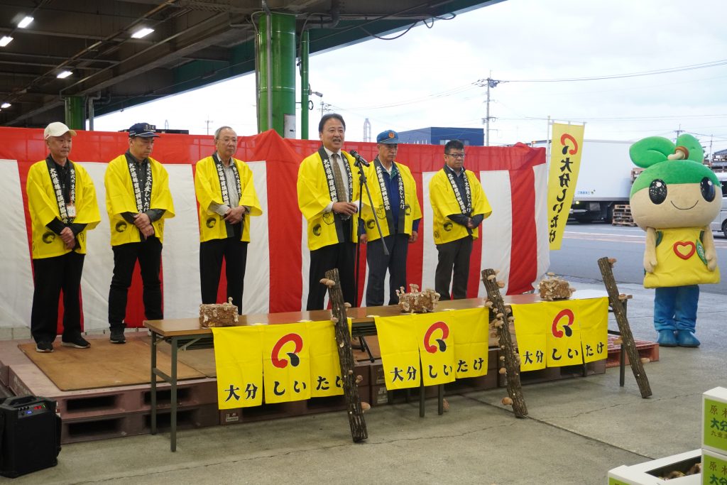 大分市公設地方卸売市場にて大分県産しいたけの旬入り宣言式が行われました。