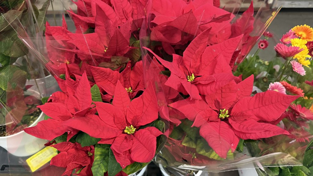 クリスマスシーズンの定番、ポインセチア。実は赤い部分は花ではなく“苞葉(ほうよう)”で、